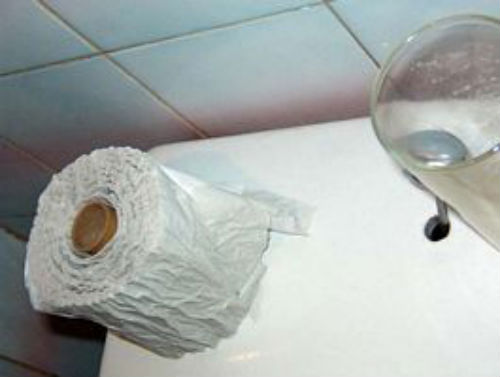 Tirar bolas de papel higiénico mojado al techo del servicio