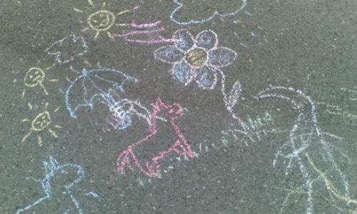 Coger tizas de la pizarra para pintar el suelo del patio (generalmente para jugar a las chapas)