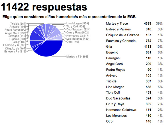 Ni uno solo de los restantes 16 humoristas propuestos en nuestra lista se les ha acercado, pero veamos los resultados de la encuesta para conocer en que lugar a quedado cada uno de ellos.