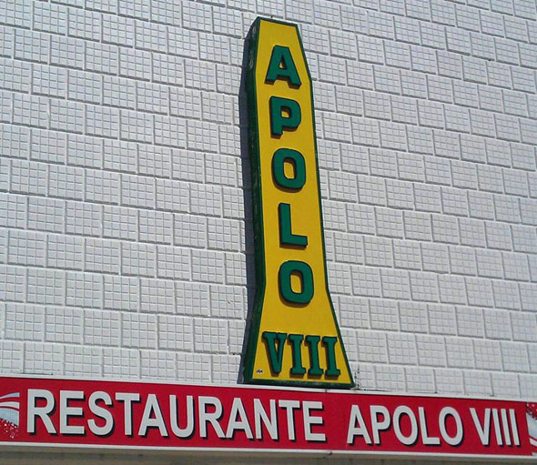 Hay otros rótulos que directamente parecen de ciencia ficción, como el del Restaurante Apolo VIII que todavía puedes ver en Somo (Cantabria). Es genial.