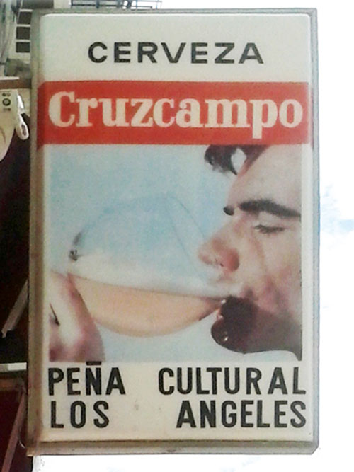 Y en la Barriada de los Ángeles, en Triana (Sevilla) puedes encontrarte cada día con este rótulo de Cruzcampo que poco tiene que ver con la imagen actual de la marca de cerveza. Véase en verano a 40º y a ver quién se puede resistir.