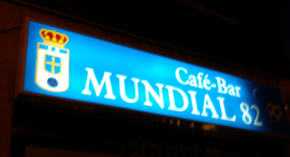 El Mundial del 82 se vivió con tanta intensidad en nuestro país que muchos no se cortaron un pelo en bautizar así a su local, como ocurre con este cafe-bar de Oviedo. Muy vintage.